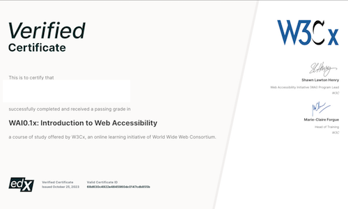 I highly recommend this course for anybody wanting to learn about digital accessibility. It's got a lot of great info and a relatively small time commitment.