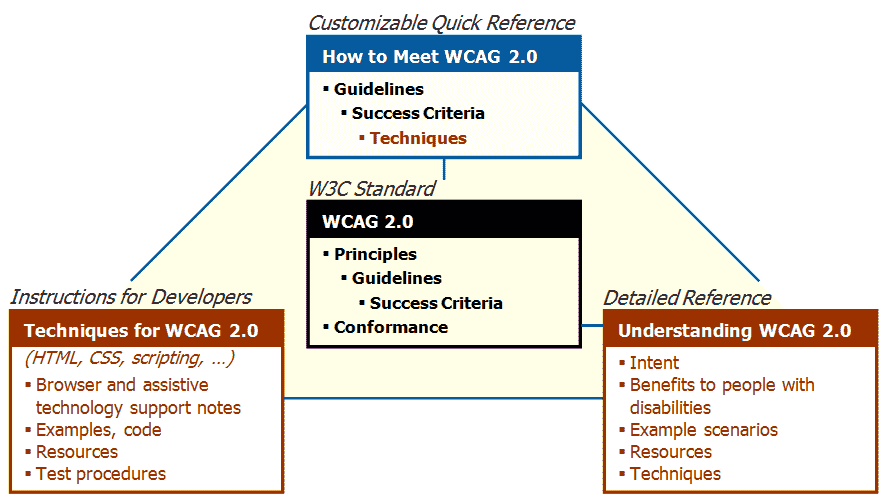 • Left: Instructions for Developers ; Techniques for WCAG 2.0 ; (HTML, CSS, scripting, …)_